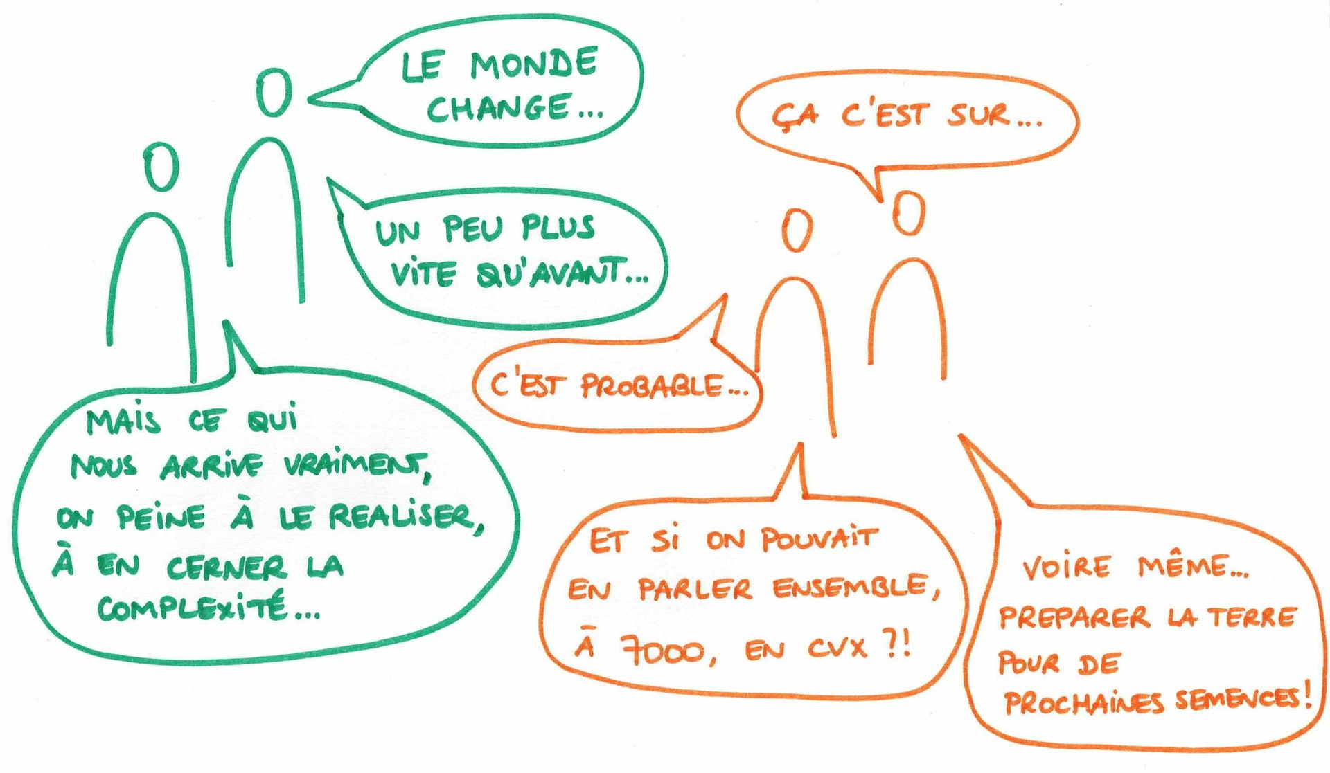 Une première étape aujourd’hui : une parole personnelle, libre, pour se mettre en route (voir fin d'article). Des étapes à venir sont en cours de construction : des questionnaires individuels, des articles à lire, des partages et des expérimentations en communautés locales et communautés régionales, sans oublier d'aller à la rencontre des autres...